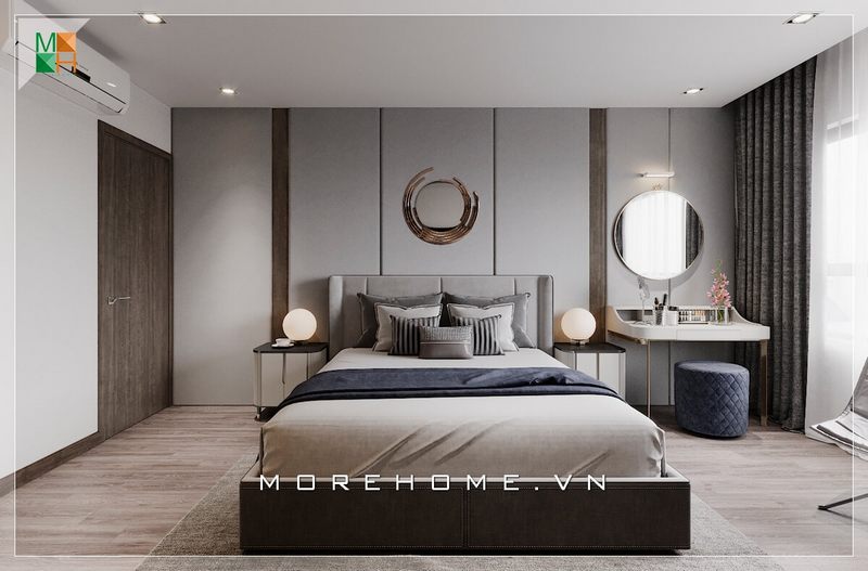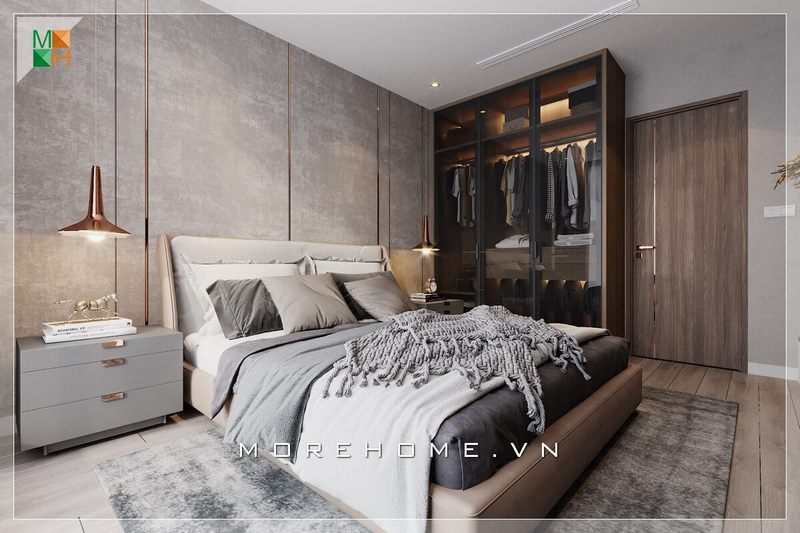 Mẫu cửa gỗ công nghiệp An Cường cao cấp được kết hợp với đường kẻ sọc bằng kim loại giúp tạo nên cảm giác nổi bật, làm nổi bật không gian phòng ngủ.